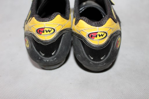 Взуття для шосейного велосипеда. Вони чорно-жовті. Їх виготовила відома і шанована компанія Northwave. Вони виготовлені з дуже якісної шкіри та матеріалу. Взуття застібається на липучку. Вони також мають шипи, які кріпляться до педалей. Вони характеризуються досить хорошим станом і якістю матеріалів. Взуття типово жіноче. Це вживаний продукт із звичайними слідами використання (дивіться фотографії).