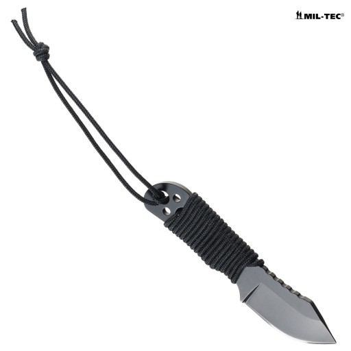 Мініатюрний ніж EDC (Everyday Carry), який можна носити на шиї. Продукт німецького бренду Mil-Tec. Ніж ідеально підходить для щоденного використання, незамінний для легкої та точної роботи. Його головні переваги - невелика вага і компактні розміри. Його можна носити на шиї, нозі, руці або талії, і його легко сховати. Розсудливість дозволяє непомітно носити його під костюм, форму або навіть футболку. Рекомендовано для любителів виживати, в тому числі міських.