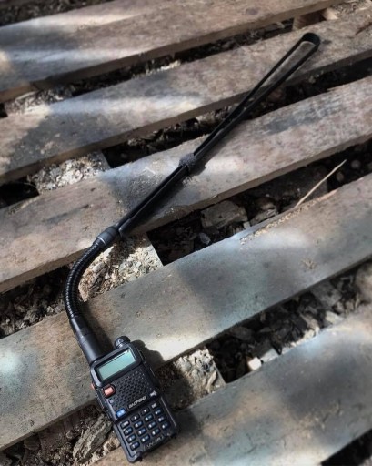 У розкладеному стані у антени багато прихильників - така конструкція антени добре працює в спрямованих антенах, які необхідно складати, щоб отримати компактну портативну антену - в розкладеному вигляді носити такі антени просто незручно. Цей тип антени вже доступний у всеспрямованому варіанті, з тенденцією до отримання характеристик спрямованості - більшої дальності на великих відстанях! Електрично це еквівалент лямбда-антени 1/4 на УКХ-діапазоні, тому коефіцієнт підсилення та характеристики схожі. Завдяки товстому радіатору і відкритій конструкції антена працює широко - з можливостями прослуховування в межах усього УКХ і УВЧ діапазону (Діапазон частот від 136 до 520 МГц - заявлено виробником і розміщено на антені). Пристойна якість роз'єму, котушки, радіатора і суцільного гумового захисту на кінці антени.