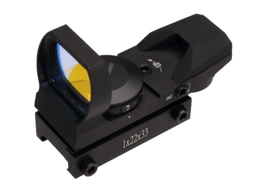 Удосконалена модель відкритого коліматора зі змінними точками наведення. Цей невеликий коліматор ідеально підійде для штурмових і параснайперських гвинтівок і пневматичної зброї Міцна конструкція і адаптована до 11-рейки. Коліматор працює від літієвої батареї CR2032 3V, має повне регулювання положення прицільної сітки та її яскравості (0-7), червоне підсвічування прицільної сітки та 4 види доступних прицілів.