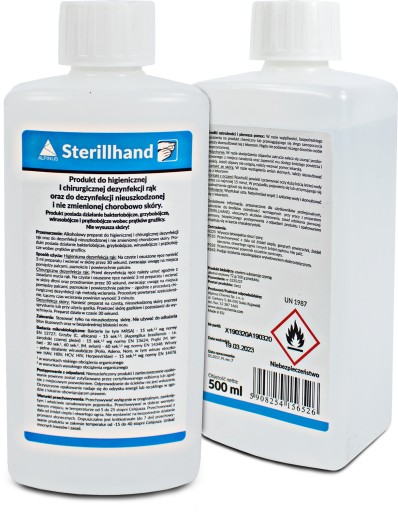 Втирайте 3 мл STERILLHAND в шкіру рук протягом 30 секунд. Повторити операцію відповідно до процедури хірургічної дезінфекції рук методом втирання.
