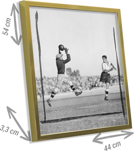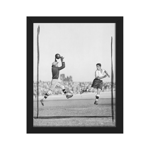 Ілюстрація матчу Польща-Швеція на стадіоні Легія у Варшаві міжвоєнного періоду. Воротар ловить м'яч. Джерело: Ilustrowany Kurier Codzienny, надано Національним цифровим архівом.