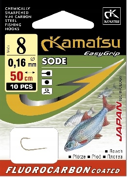 Przypony FC 50 Sode płoć należą do serii przyponów wiązanych na żyłce pokrytej fluorocarbonem! Linka ta charakteryzuje się zwiększoną odpornością na przetarcie oraz zmniejszoną widocznością w wodzie, ułatwiając łowienie ostrożnie żerujących, dużych ryb.