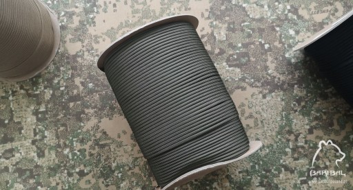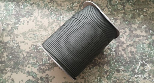 Високоякісний нейлоновий парашутний шнур, що складається з 7 ядер з міцністю 550 фунтів, тобто 250 кг. Вироблено в США постачальником контрактної лінії для армії США. Виробник дотримується суворих стандартів контролю якості та лабораторних випробувань mil-spec, що доводить прискіпливий підхід до якості та повторюваності продукту, а також відповідний колір військової лінії. Шнур зі 100% нейлону, що складається з 7 згорнутих разом сердечників і оболонки.