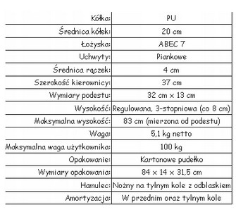 Довжина самоката 95 см, висота 85 - 115 см, ширина осі переднього колеса 15 см. Самокат має колеса XL діаметром 20 см.