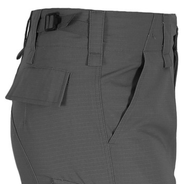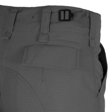 Dwie kieszenie udowe typu CARGO o powiększonej ładowności. Kieszenie CARGO są umieszczone skośnie, co ułatwia do nich dostęp.Kieszenie zamykane za pomocą guzików. Specjalne kieszenie na elastyczne ochraniacze kolan, zamykane na rzep.