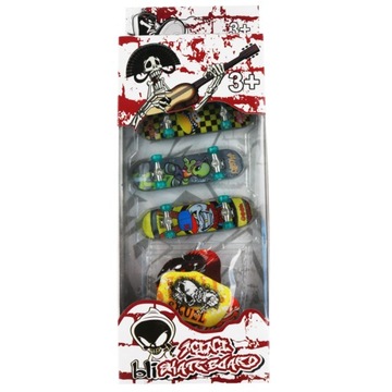 Набор включает в себя 3 миниатюрных скейтборды, изготовленных из пластика, наждачной бумаги с металлическими элементами и kauczukowymi колесами.