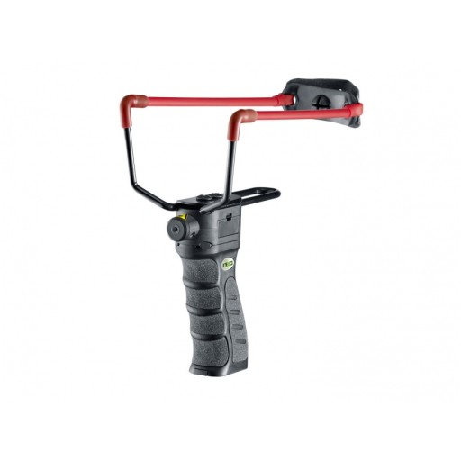 Рогатка має профільовану полімерну рукоятку, неслизька текстура якої запобігає вислизанню пращі з руки. Всередині рукоятки є відсік для 8 сталевих кульок.