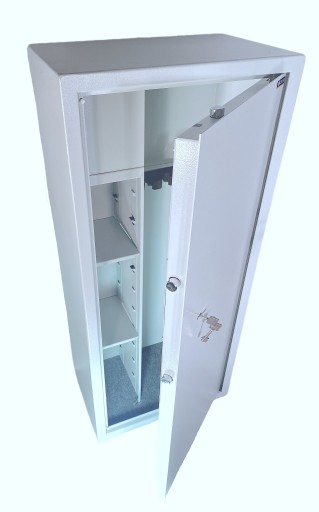 - Сейф має 6 тримачів для довгої зброї, дві регульовані полиці та сейф для короткої зброї або боєприпасів чи інших цінностей,