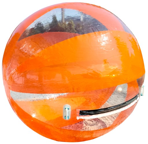 Куля для води, виготовлена з матеріалу TPU, товщиною 0,8 мм і діаметром 2 м. TPU - це матеріал, особливо рекомендований для куль, балонів з водою та для виробництва обладнання, яке піддається мінливим погодним умовам. Він набагато стійкіший, ніж ПВХ матеріал. М'ячі з матеріалу TPU легші, міцніші, більш стійкі до низьких температур, менш схильні до механічних пошкоджень. Вони не жовтіють під впливом сонячних променів.