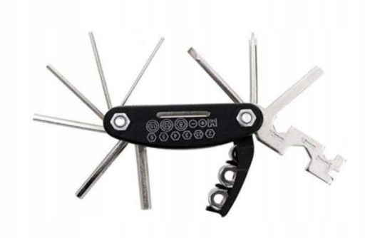 - шестигранні ключі, викрутки, розетки, перехідник, ріжкові ключі, спицевий ключ