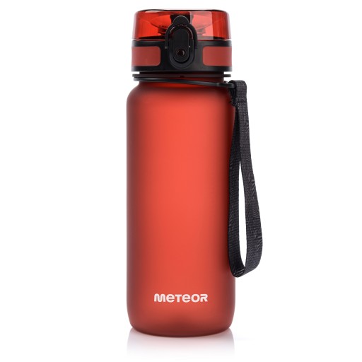 Практична пляшка марки Meteor, яку ви можете взяти з собою на тренування, у спортзал, школу чи подорож на велосипеді. Пляшка прозора з матовим покриттям і протиковзкою поверхнею.
