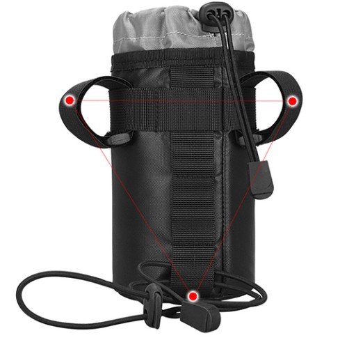 У верхній частині є шнурок для затягування та захисту пляшки/пляшки від вислизання з тримача та падіння.