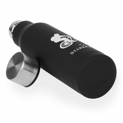 Чорна термопляшка Starke Pro Explorer об'ємом 750 мл з нержавіючої сталі надзвичайно міцна та стійка. Тому він підходить для будь-якої, навіть найекстремальнішої подорожі. Він довго зберігає температуру напою, тому ви можете насолоджуватися гарячим чаєм в горах або кавою з льодом на пляжі. Стильний зовнішній вигляд означає, що ви можете похвалитися друзями та знайомими.
