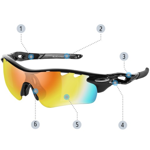 - 5 змінних лінз: дзеркало REVO HD, поляризоване TAC, синє, жовте, прозоре)