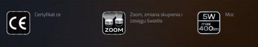 - Ліхтарик має функцію масштабування, яка дозволяє змінювати фокус світла і регулювати діапазон світла