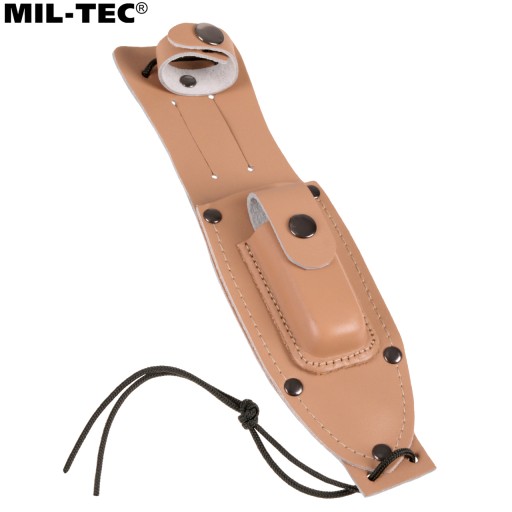 Піхви з натуральної шкіри зручні, міцні, а завдяки ремінцю із застібкою-застібкою надійно утримують ніж усередині. Подвійний виріз на задній частині піхви дозволяє носити її на поясі шириною до 4,5 см.