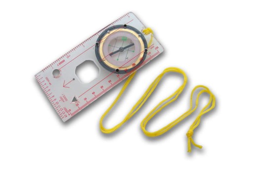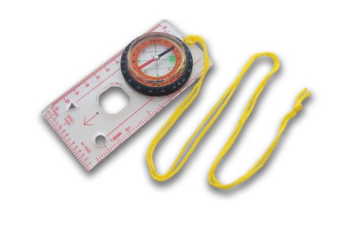 Компас має прозору основу, на якій розміщені метри двох шкал.