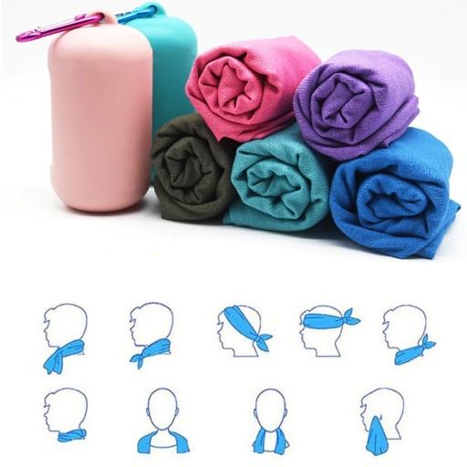 - Тканина надзвичайно тонка і легка, але її поглинаюча здатність в 2-3 рази більша, ніж у звичайного рушника, що дозволяє довше охолоджувати або краще витирати піт
