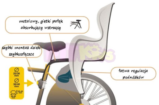 - можлива установка на підсідельні труби круглого перетину діаметром 25-36 мм, 38-46 мм і овальні підсідельні труби діаметром 38-60 мм і 30-40 мм.
