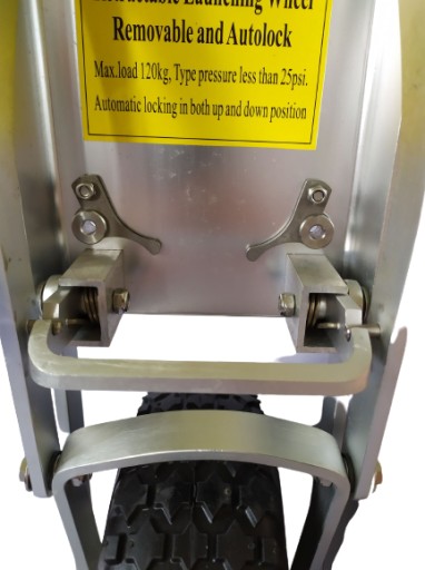 Конструкція має фіксатор в обох положеннях, тому колесо не може самостійно скластися під час рулювання або плавання.