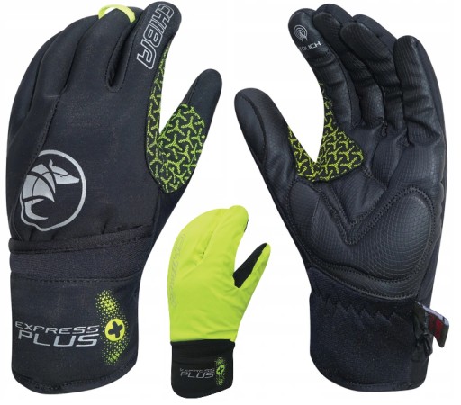 CHIBA EXPRESS+ легкі зимові велорукавички з чохлом, фтор/чорні