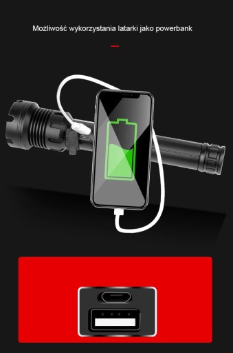 Ліхтарик живиться від двох батарей 18650 або 26650 і може заряджатися через популярний роз'єм microUSB за допомогою зарядного пристрою для телефону (кабель USB-micoUSB входить в комплект). Функція Powerbank - можливість використовувати ліхтарик як powerbank і заряджати, наприклад, телефон.