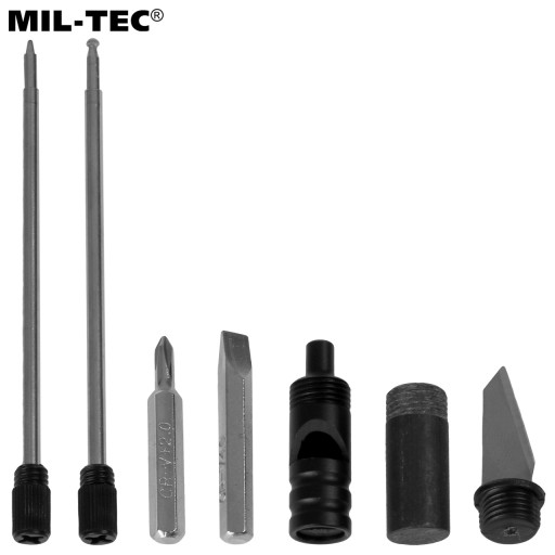 Викрутки виготовлені зі сталі CrV, скальпель - з нержавіючої сталі, ручка, свисток і куботан - з алюмінію, склобій - з вольфраму, а крім того в набір входить магнієвий кремінь. Інструменти монтуються в різьбові або магнітні гнізда. На різьбі є гумові ущільнювачі, що запобігають самовідкручування елементів.