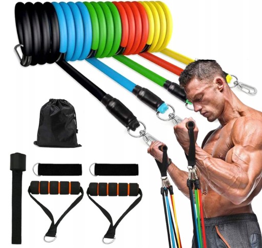 Набір з 5 резистентних ремінців, виготовлених з високоякісної гуми, забезпечує не тільки довгий термін служби, але й безпеку під час тренувань.
