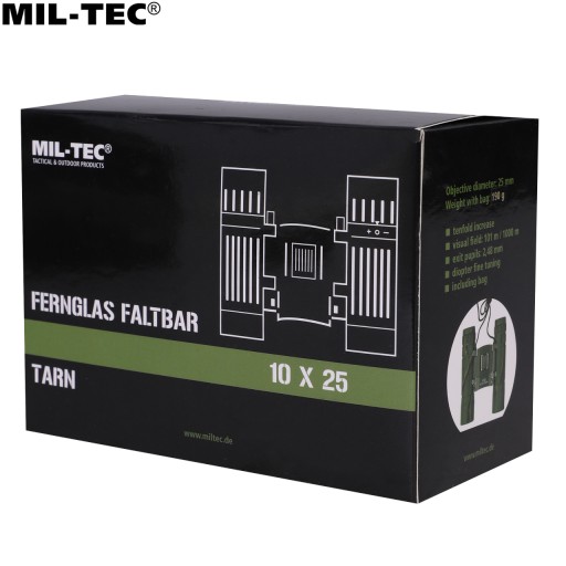 Тактичний бінокль 10X25 від німецького бренду Mil-Tec забезпечує відмінну яскравість і різкість зображення, зберігаючи невелику вагу конструкції. Завдяки своїм невеликим розмірам і вазі він працює як ідеальне портативне обладнання, забезпечуючи швидкість і легкість використання.