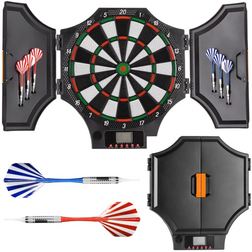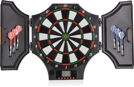 У представленому щиті 31 гра, що дає аж 285 комбінацій! DB15000 оснащений чітким РК-дисплеєм, який дозволить вам всім гравцям для відстеження результатів гри. Можна до 8 осіб взяти участь в одній грі, що робить щит чудовою перевіркою на домашніх вечірках або сімейних зборах. Поставляється з щитом ви отримаєте 6 дротиків із 12 запасними наконечниками, які дає можливість почати гру відразу після отримання посилки, без необхідності купувати необхідні аксесуари. функція Автоматичне вимкнення гарантує, що вам не доведеться про це пам’ятати післяігрові заходи. Це робить закрита конструкція щит захищений від пошкоджень, коли він не використовується.