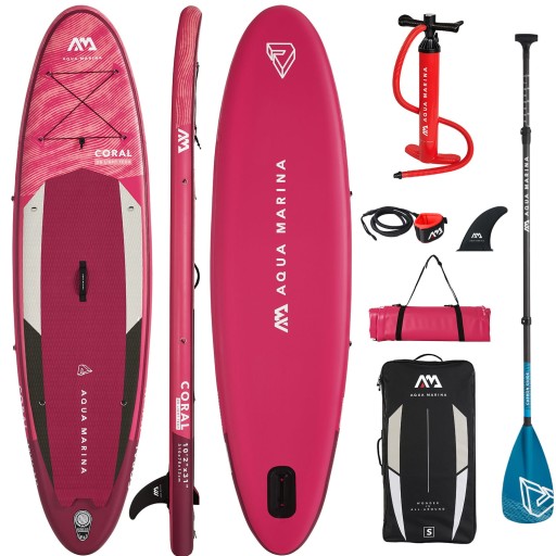 Coral — це перша універсальна SUP-дошка, розроблена в основному для веслувальників, незалежно від рівня досвіду користувача. Його унікальний колір виділить вас на будь-якому пляжі. Поєднання технології Drop-Stitch Light (легкі нитки крапельного шва) з технологією електромагнітного зварювання (HF Welding) робить дошку Coral набагато легшою без шкоди для жорсткості. Завдяки додатковим сталевим колесам, розташованим з боків, цю дошку вагою 8,6 кг легко переносити.