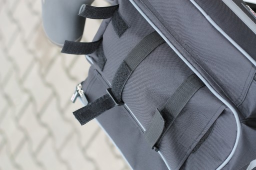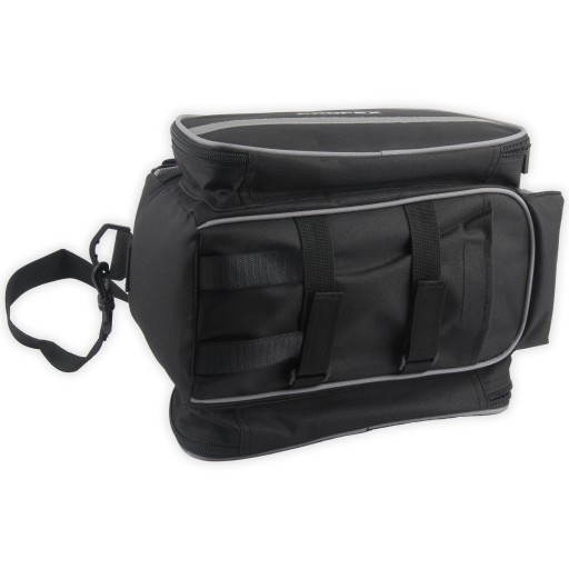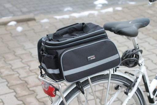 Велосипедна сумка на багажнику оснащена світловідбиваючими елементами. Дві великі бічні кишені мають вбудовані розкладні сумки, які дозволяють транспортувати додатковий багаж, якщо це необхідно. Зверху гумка для перенесення додаткового багажу і зовнішня сітчаста кишеня.