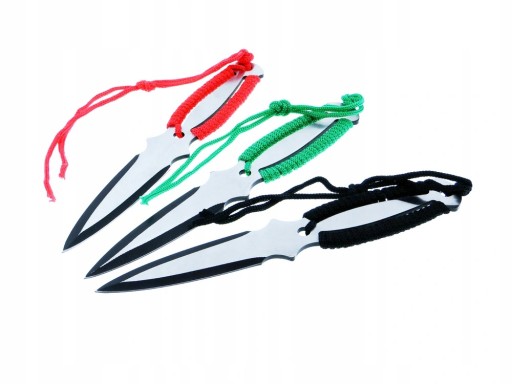 Ножі виготовлені з цільного шматка металу, що забезпечує їх довговічність. Точність кидків досягається завдяки відповідній вазі та балансу. Ніж покритий чорним захисним покриттям. До ножів додаються функціональні піхви з кордури.
