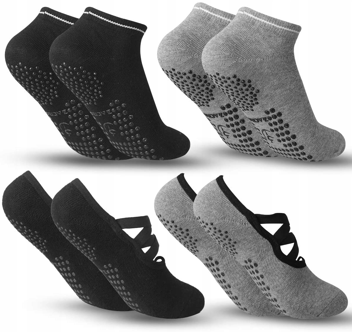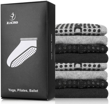 Zestaw 4 antypoślizgowych skarpet do jogi, pilatesu, baletu, tańca, treningu bosego, zapobiegania upadkom, czarno-szare