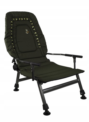 Має широке зручне сидіння та спинку, що регулюється до положення лежачи. Підлокітники з прогумованим покриттям, ніжки, що регулюються окремо, дозволяють використовувати крісло на нерівній, похилій місцевості, широкі ніжки запобігають падінню на м’якій землі.