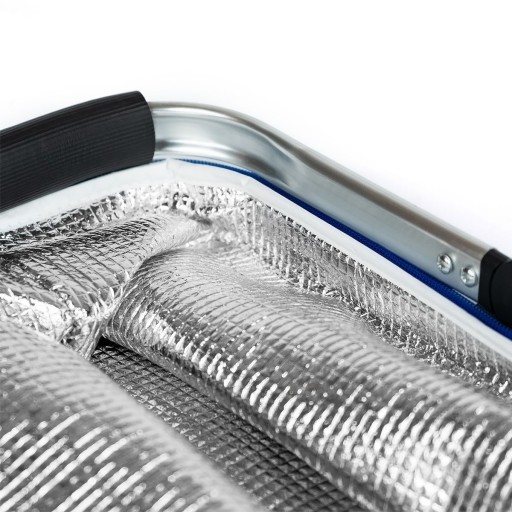 Він має складну ручку висотою 18 см з пінопластовою обробкою. Його конструкція складається з легких алюмінієвих елементів і посиленого дна. Внутрішня частина обшита термофольгою. Закривається на блискавку з двома бігунками.