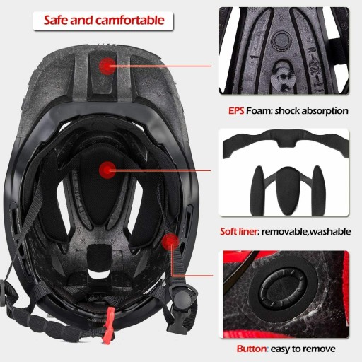 - Безпека: оболонка з полікарбонату + піна EPS + внутрішня оббивка для захисту від ударів і поту + вбудована конструкція + подовжена ручка (для захисту очей від сонячного світла).