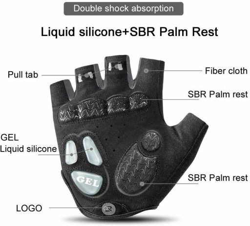 Рукавички оснащені 3-компонентним LIQUID GEL і 6-компонентним SBR. Добре розміщені подушечки покривають усі точки тиску рук. Вони поглинають більшість ударів і забезпечують достатню підтримку, зменшують оніміння/пошкодження нервів і захищають ваші руки від мозолів під час їзди на велосипеді чи фізичних вправ.