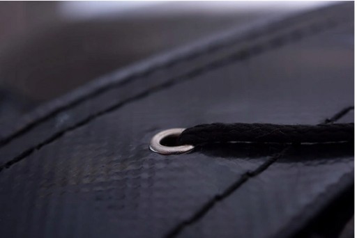- Металеві заклепки захищають матеріал від порізів і мають гладкі краї, щоб захистити шнурки, які використовуються для зав’язування сумки, від стирання.
