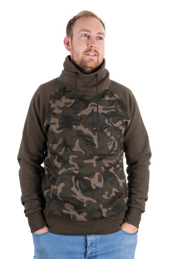Високоякісний світшот-пуловер кольору хакі з рукавами та верхньою панеллю з візерунком Fox Camo.