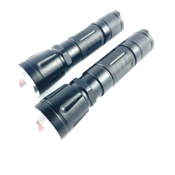 Doświetlacz X-940nm jest bardzo mały, jak widać mieści się na dłoni Waży zaledwie 45g ( około 90g z baterią ) dlatego po zamontowaniu na broni praktycznie nie jest odczuwalne zwiększenie ciężaru. Długość iluminatora to niecałe 12cm ( około 13cm przy wysuniętym Zoom-ie ) Średnica soczewki około 3cm, średnica korpusu 1cal.