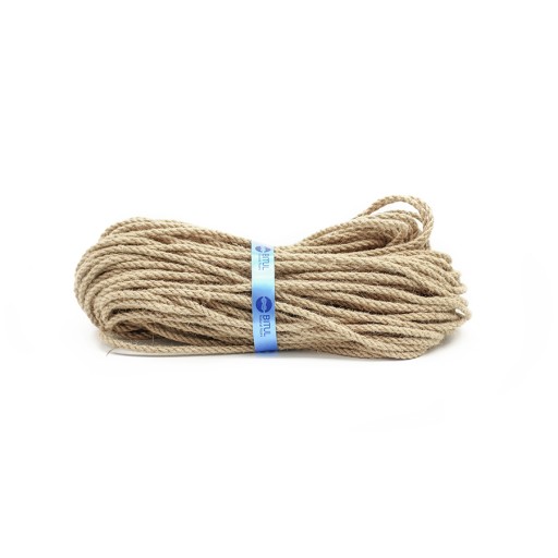 Мотузка 3-жильна джутова, кручена, виготовлена з джутової пряжі з домішкою олії, що полегшує виробництво та покращує властивості канату.