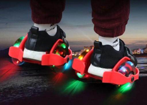 Сяючі каблучки/накладки на взуття. Вони дозволяють швидко і зручно змінити стандартне взуття на елегантні ковзани зі світлодіодним підсвічуванням! Не потрібно додаткового живлення! Досить привести ролики в рух, щоб засвітилися вбудовані кольорові світлодіоди. Надзвичайно легкий і швидкий монтаж завдяки використанню еластичної стрічки. Ролики вдало адаптуються до спортивного взуття будь-якого розміру! Накладки з роликами також оснащені плавним регулюванням ширини в площині від 6 до 9,5 см, що ще більше підвищує їх універсальність!