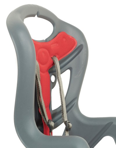 Сидіння має додатковий ремінь безпеки від зісковзування з багажника. УВАГА! ремінь кріпиться до підсідельної стійки або підсідельної труби, а не до стійки!
