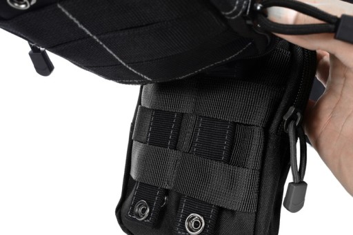 Підсумок працює з системою MOLLE, тому ви легко підключите його до рюкзака або тактичного жилета! Крім того, ви можете комбінувати більше елементів із системою аж до самого мішечка!