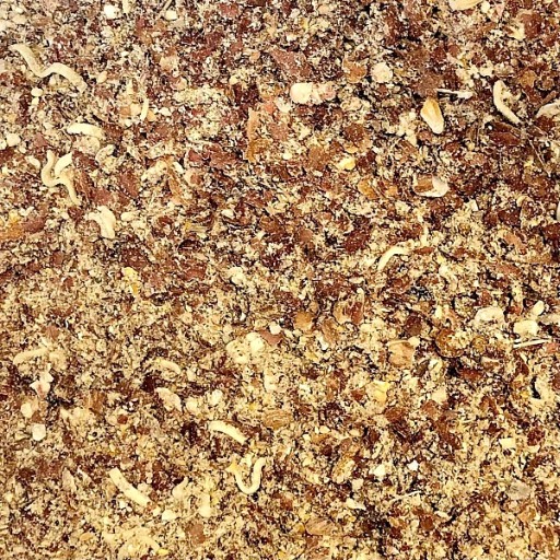 СКЛАД: кукурудзяний екструдат, кукурудза дроблена, пшениця мелена, зерно спиртове, локшина швидкого приготування, насіння соняшнику, льон, горіхове борошно, горіхове лушпиння