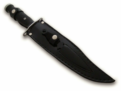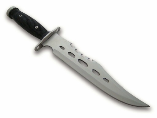 Великий військовий багнет має лезо з характерним профілем боуі з універсальними зубцями на тильній стороні.