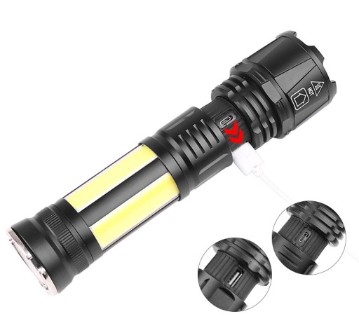ЛІХТАРИК з діодом XHP90 + 4x COB LED з магнітом (батарея 26650 5100mAh в комплекті)