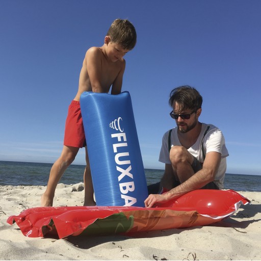 - Спосіб використання: fluxbag - це велика сумка, яку можна легко надути повітрям, потім закрити, вставити спеціальний наконечник і потім надути, наприклад, матрац або інші корисні на пляжі речі тощо.